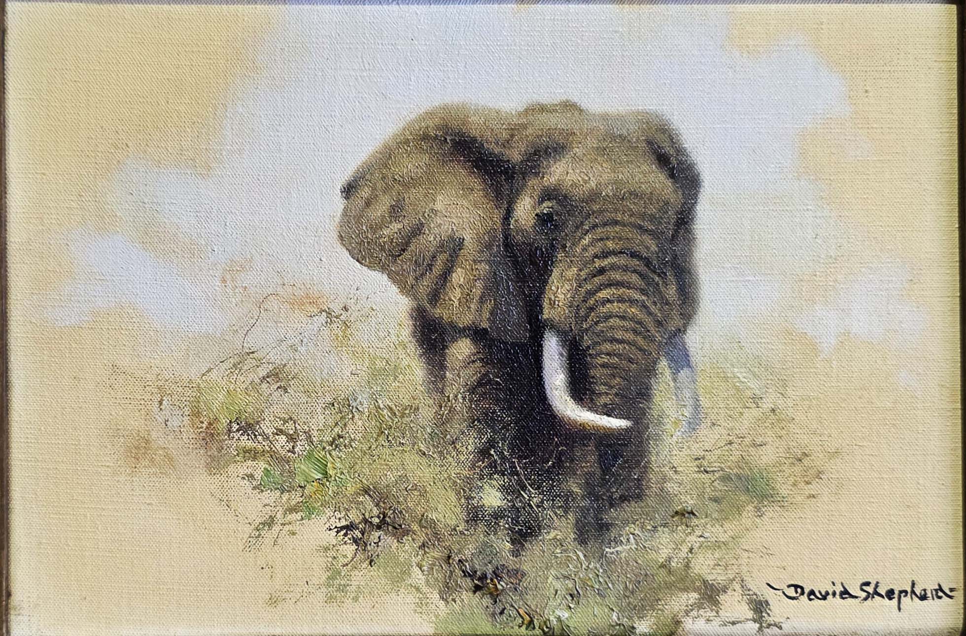 An original painting of a single Africal Bull Elephant, signed to lower right.