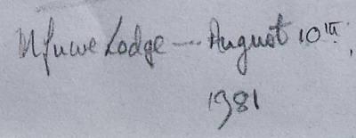 and this particular drawing, some forty years old, has charm and detail, being sketched in the game reserve.