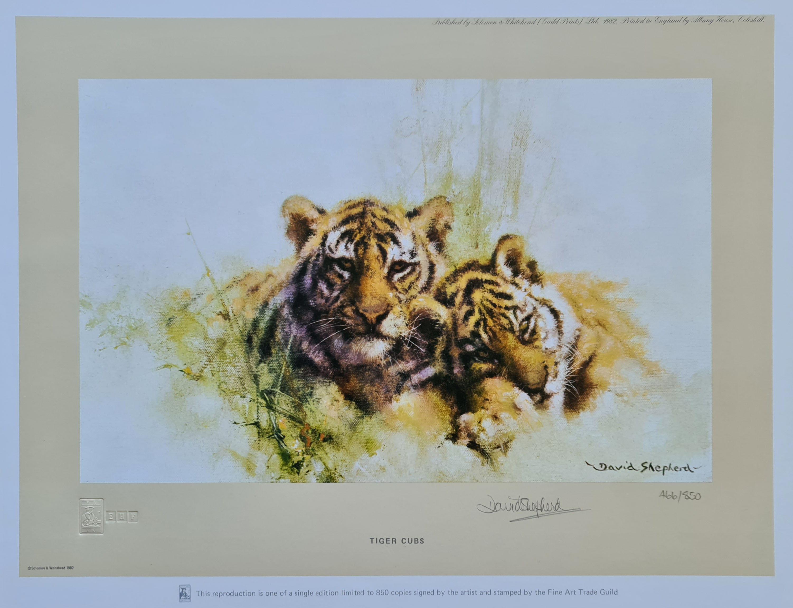 A beautiful painting of two Tiger cubs, this publication is now almost forty years old, and many in the edition have been lost or destroyed.